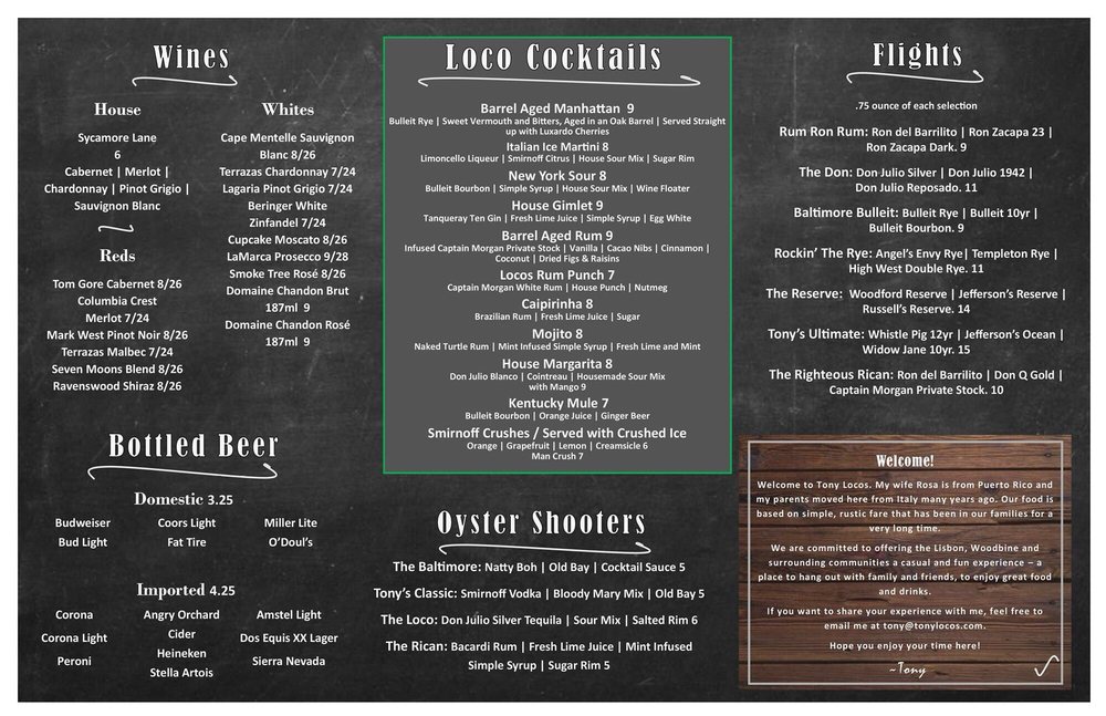 Welcome to Tony Locos Bar & Restaurant, a hidden gem nestled in the Lisbon Shopping Center. This vibrant establishment seamlessly blends Italian cuisine with engaging bar vibes, perfect for friends and families alike. The menu showcases mouthwatering offerings, from classic Italian dishes to flavorful Latin specialties. For the little ones, there is a delightful kids' menu featuring favorites like Chicken Fingers and Fettuccine with Marinara.
