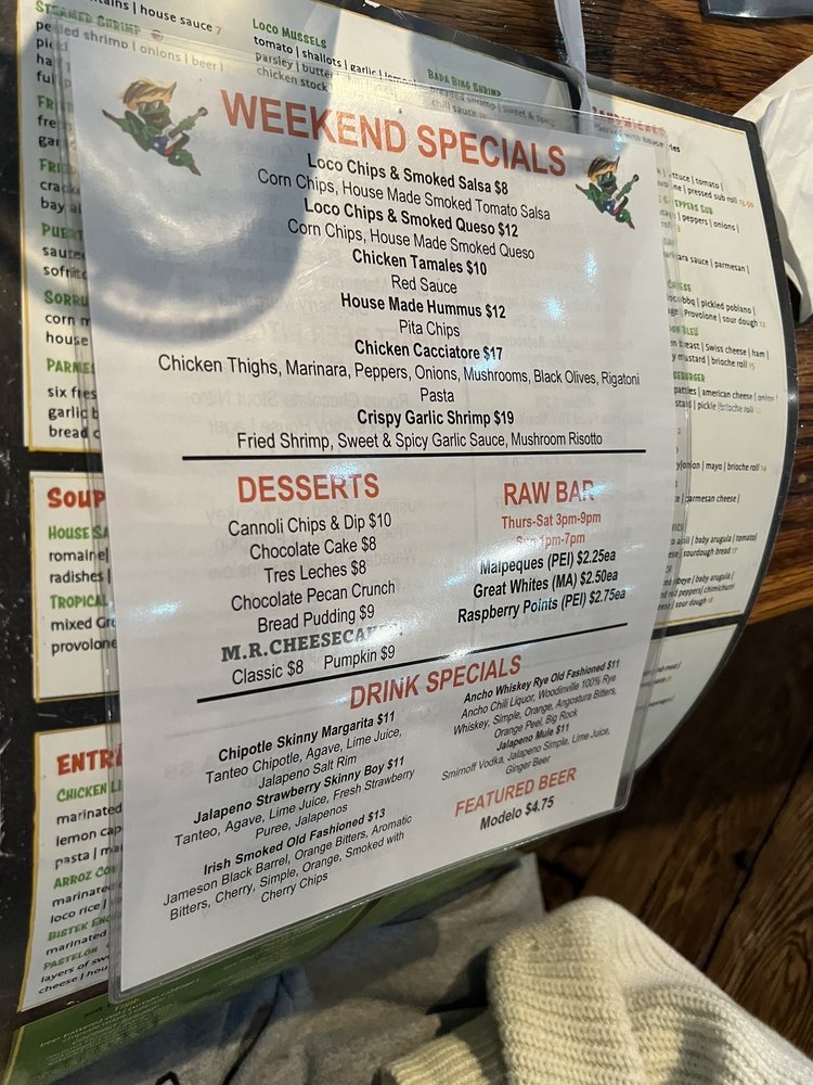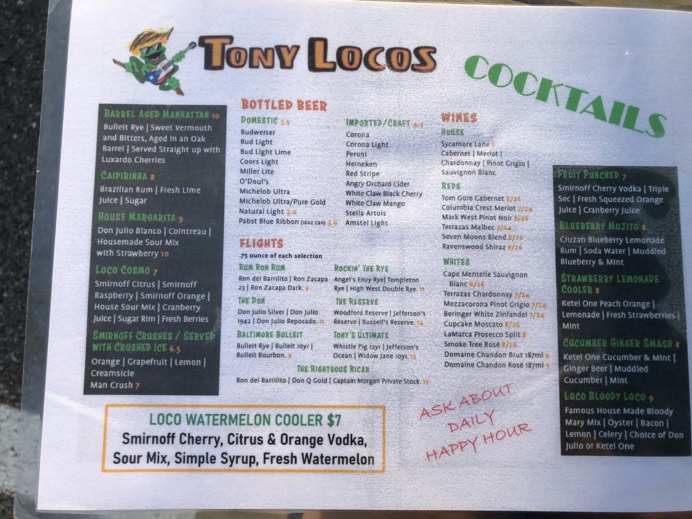 Dessert lovers will find a sweet haven with options like Tata Gemas Flan and Chocolate Mousse Cake. The atmosphere is warm and welcoming, adorned with colorful murals and a sports-themed bar. Patrons rave about the super-tender "pernil" pork sandwich paired with crispy fries and seasoned rice. With a dynamic drink selection, enticing specials, and frequent live music, Tony Locos offers an unforgettable dining experience sure to keep you coming back for more!